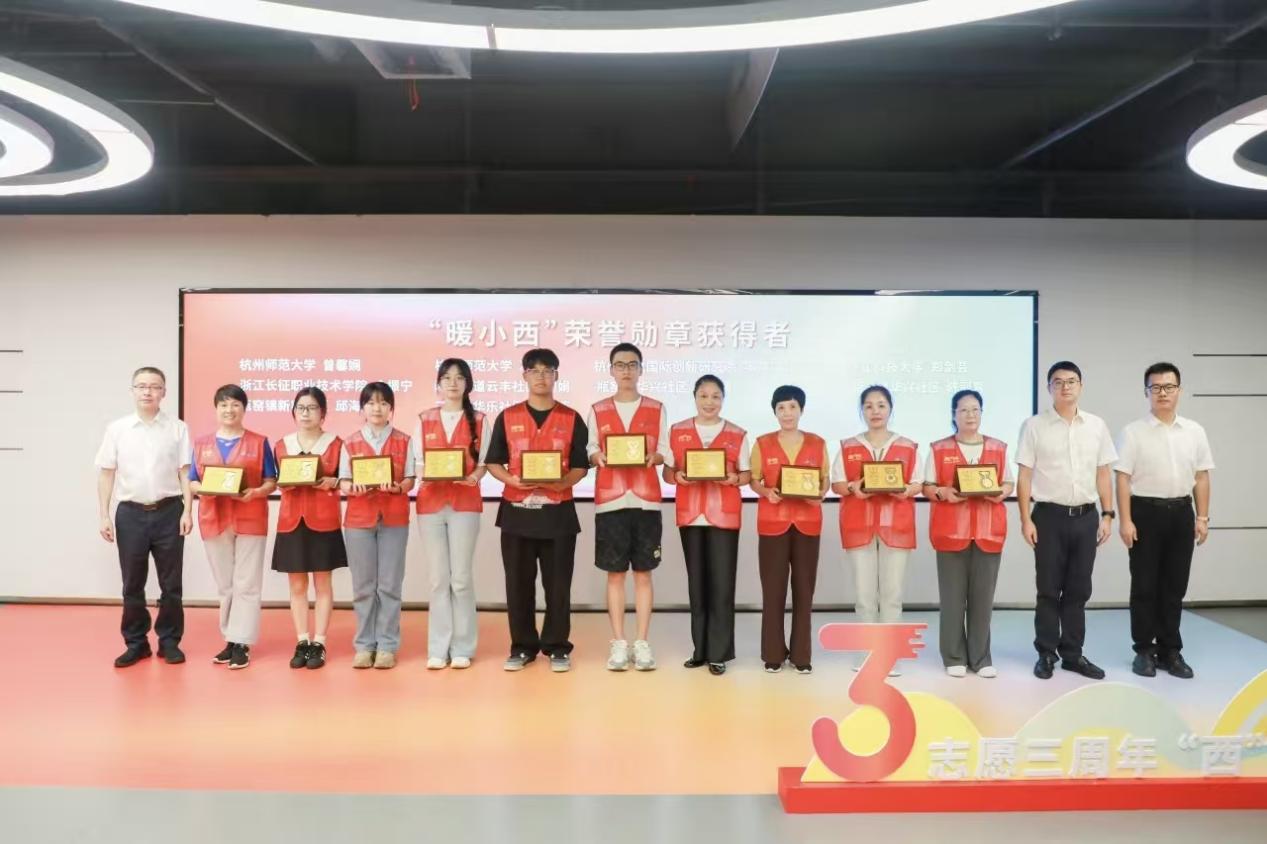 近日,杭州西站“暖小西”志愿服务三周年纪念活动温情启幕。活动以“志愿三周年 ‘西’心同温暖”为主题,全面回顾志愿服务成果,致敬长期坚守的志愿力量,我校青年志愿者凭借三年来专业、扎实的服务表现,荣获“‘暖小西’志愿服务优秀组织奖”。校团委副书记慕莎、学校志愿者代表金振宁受邀参会。