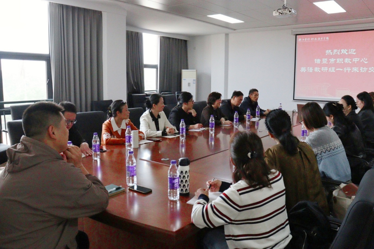为促进中高职英语教学体系有效对接,推动校际经验互鉴与协同发展, 近日 ,诸暨市职教中心英语教研组朱洁婷老师一行16人 来校 开展调研交流。人文与管理学院院长潘雅辉、党总支副书记丁慧瑛、公共外语教研室主任王秋热情接待。
